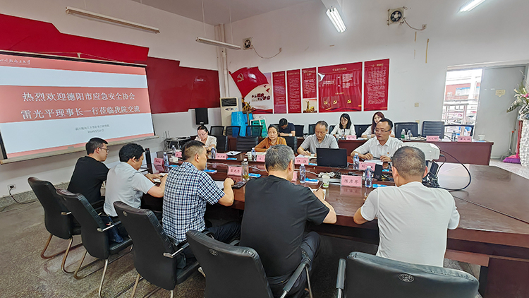 为贯彻落实学校“产教融合、特色发展”战略,充分发挥高校服务地方、服务产业的作用, 5月31日下午,德阳市应急安全协会理事长雷光平一行莅校交流。继续教育学院党总支书记张强,终身教育管理处副处长(主持工作)王霞,化工学院党委书记何泽彬,副院长(主持工作)刘小楠,以及相关工作人员出席交流会。会议由王霞主持。