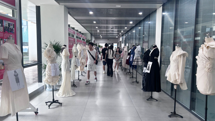 近日,美术学院服装设计系2022级服装与服饰设计专业课程《基础立体裁剪》教学成果——“爱裁就裁”作品展在李白河校区尚美楼2号门开放展厅举办。