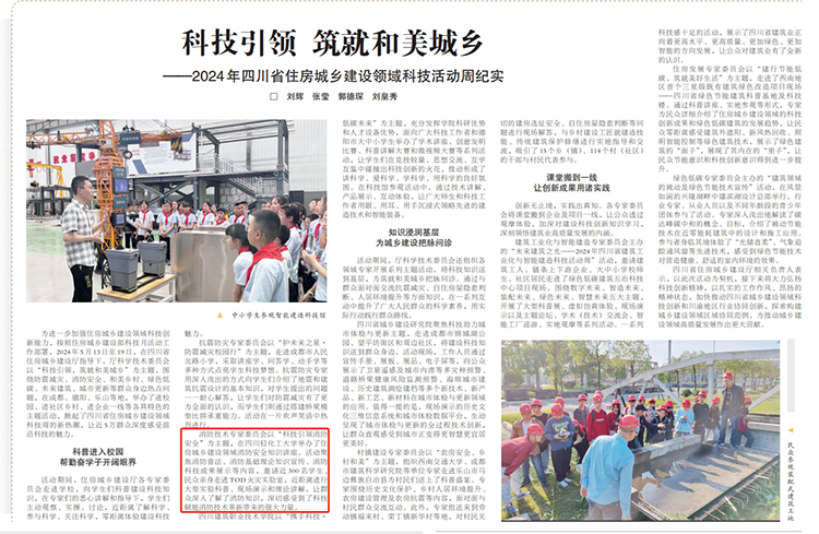 6月6日,《中国建设报》第8637期第6版以《科技引领 筑就和美城乡》为题,专题报道了2024年四川省住房城乡建设领域科技活动周系列特色活动。报道中特别提到了我校举办的“科技引领消防安全”住房城乡建设领域消防安全知识讲座活动。