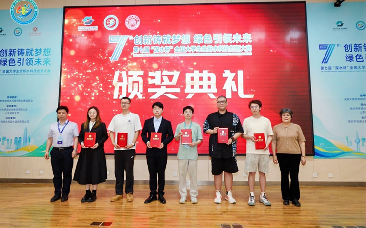 “深水杯”全国大学生给排水科技创新大赛是我国水行业领域最具影响力赛事,本届大赛由全国大学生给排水科技创新大赛组委会指导,深圳环境水务集团有限公司和山东建筑大学主办。竞赛奖项设置为,创意组设特等奖3项、一等奖7项、二等奖20项、三等奖36项和优胜奖若干;定向专题组设特等奖1项、一等奖3项、二等奖8项、三等奖15项和优秀奖若干;知识竞赛个人奖设一等奖12名、二等奖18名、三等奖30名、优秀奖若干。此次参赛,强化了工程思维的相关教育,锻炼了学生们综合运用所学知识解决复杂工程问题的能力,展示了我校学生扎实的专业知识功底和利用创新思维解决实际问题的能力。
