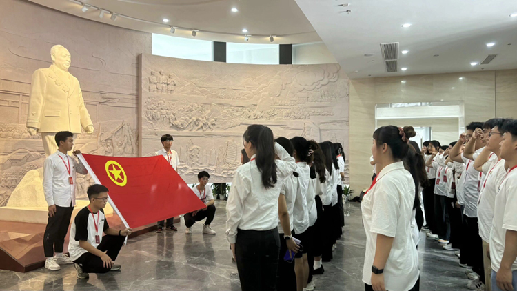 走进陈毅元帅生平事迹陈列馆,珍贵的一张张照片、一件件历史文物、一段段视频资料无不诉说着陈毅元帅光辉、伟大的一生。随后,学员们满怀崇敬与缅怀之情,跟随讲解员的脚步,认真聆听陈毅元帅的革命事迹,深入了解他一生的光辉历程。通过学习,大家得知,陈毅元帅是中国人民解放军创建人和领导人之一,中华人民共和国开国元勋,伟大的无产阶级革命家、军事家、外交家。陈毅元帅一生投身革命,为人民军队的创建和发展、为新中国革命事业做作出了伟大的贡献。虽经历无数考验,但在党和人民的利益面前,他初心如磐,铁骨铮铮,以自己的生命托举民族复兴的伟大事业,用热血写下对党和人民的忠诚。最后,全体学员们在陈毅元帅雕像前庄严肃立,以铿锵有力的入团誓词重温自己入团时的初心和使命。