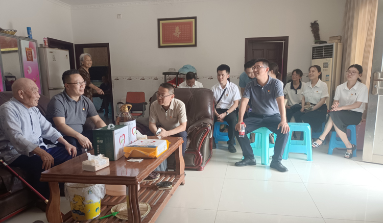 走村入户阶段,陈一君一行先到农历村3组慰问今年参加中考的雷仁彪同学,祝贺他成功考上富顺二中,鼓励他继续努力学习、争取更大成绩。其次前往农历村1组看望退役老兵李良成同志,现场听他讲述自己的革命生涯,他出生于1929年,1950年参加抗美援朝战争,1958年退役回乡担任村党支部书记多年,特别是他的一句“先有国后有家”的铮铮誓言,生动诠释一名老战士、老党员深厚的家国情怀,也深刻地感染着在场的所有人。最后前往农历村7组看望烈士家属,鼓励他们要树立生活信心,要相信党和政府永远不会忘记他们,更要靠自己的勤劳创造美好生活。
