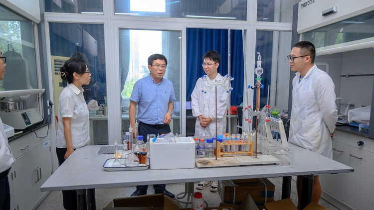 张力先后来到马克思主义学院、化环学院,实地察看了学院办公场所、符宇航劳模创新工作室、科研实验室、危化品库房等地,重点检查了实验室安全管理制度、安全防范措施落实情况、学生安全教育管理情况等方面工作。