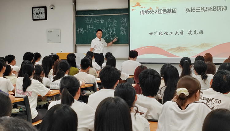 庹先国首先对2024级新生表示欢迎并衷心祝贺,希望同学们珍惜大学时光,努力成长为有理想、有担当、有作为的新时代青年。随后,庹先国介绍了学校历史沿革、652红色基因溯源和发展、如何铸就“三线建设”办学文化和弘扬“三线建设”精神,通过回顾学校60余年的奋斗历程,具体呈现了,诠释了“三线建设”精神、“652精神”以及大学魅力、大学文化、大学灵魂。