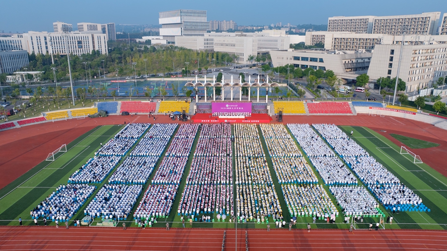 甲辰之秋,序启新章。这段无比煎熬的高温天气,终究是川渝扛下了所有,有人调侃超强台风“摩羯”对上川渝“副高”也甘拜下风、拐了个弯。焦灼之下,学校将你们本该入校就喜提的改变“脆皮大学生”柔弱体质的半月军训顺延到国庆之后,待你们入校半月“初体验”之后,终于在几场秋雨过后气温实现礼貌性下降的这个早晨,适时地与大家相聚在高颜值高内涵的李白河校区,用一场盛大且具仪式感的开学典礼,祝福你们开启大学乘风之旅,期待你们实力演绎硬朗人生。你们这一届,有19位新同学开学报到前刚好度过自己的18岁生日,祝福你们生日快乐、成年亦乘风,期待大家未来逢知己、遇佳人、逐良师,在川轻化永远如风一般自由,如光一般灿烂。你们这一届,有5000多名新同学来自广袤农村,很欣慰看到这么多相信读书可以改变命运的学子抵达大学这一站,期待你们在新征途中去探索、去质疑、去进步,去感受读书人最纯粹的快乐。你们这一届,同名同姓的缘分不比上一届同学浅,有4位李湘同学,还有4位刘翔同学,不知你们是否喜欢主持和跨栏,期待你们今后能跨过此生遇到的所有障碍,寻找到并深耕喜爱的专业和领域,努力地闪闪发光、照亮他人。这个开学季,于你们而言意义非凡、值得纪念,列车运行前方到站,是山海,是拾梦青春,是你们的大学。请来自四海八荒的你们放心且相信,踏入大学校门这一刻起,无论过往怎样、成绩几何,这一片新天地都将赋予你重新开始和勇敢追梦的底气,让你们乘风而起、追光而往,建构属于自己也当属这个时代的滚烫梦想与灿烂星河。