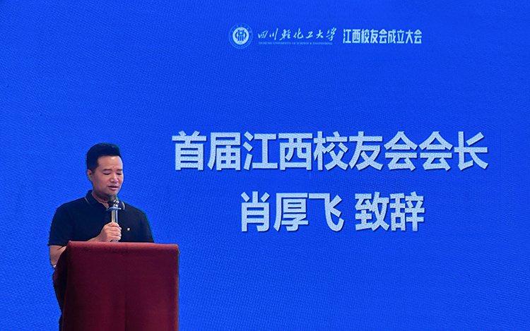 肖厚飞作为首届江西校友会会长致辞,他感谢母校对江西校友的关心支持,感谢母校领导、老师和广大校友对江西校友会筹备工作的大力支持。他表示,今天接下了江西校友会会长的重担,将不辱使命,努力工作,带领校友会全体同仁在校友和母校之间建立起连接的桥梁,搭建好江西校友合作交流的平台,用情用心用力做好江西校友会工作,以优异的成绩向母校60华诞献礼。