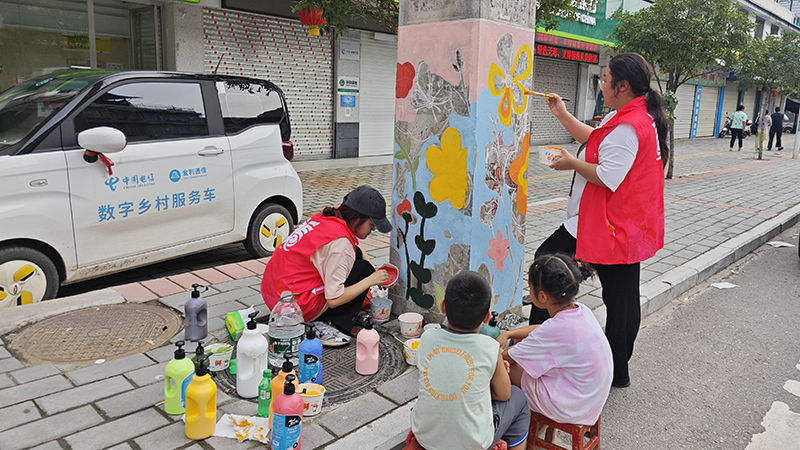 美术学院“彩绘织梦”文创团队前往绵阳市盐亭县富驿镇,在当地开展了“点靓富驿彩绘”活动,进行了文明宣传,团队带着绘画工具,进行了墙绘创作、农产品包装设计、用自己的行动助力绿色生态发展,实践队员们深刻感受到绿水青山、金山银山的画卷定会在绽放各个村落。