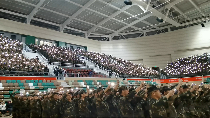 在决赛期间,正值我校开展军训,一场别开生面的 “共唱一首歌”主题音乐文化活动在体育馆精彩上演。当熟悉的旋律响起,4000 余名学生与参赛选手代表一起唱响《歌唱祖国》,现场气氛沸腾。这是一次音乐的盛宴,更是一次心灵的洗礼。激昂的节奏,振奋人心的歌词,让每一个参与者都感受到强烈的情感共鸣,激发爱国情怀,增强民族自豪感。