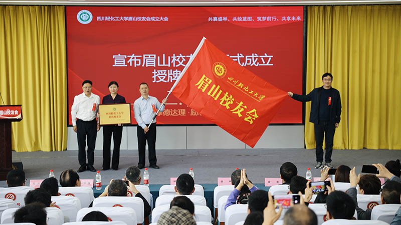 会上,胡光忠宣布四川轻化工大学眉山校友会正式成立,并为校友会授牌、授会旗,为当选理事会成员颁发聘书。
