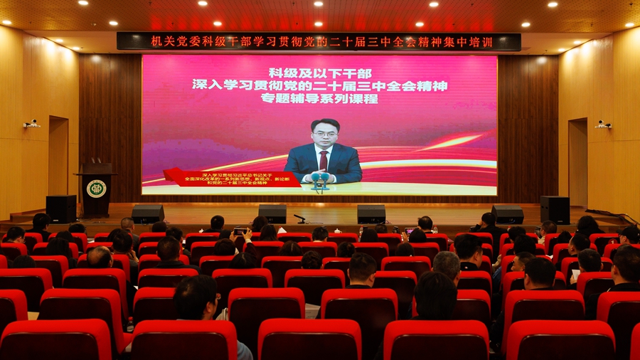 为深入学习贯彻党的二十届三中全会精神,深刻领会和把握进一步全面深化改革的主题、重大原则、重大举措、根本保证,引导职能部门科级干部切实把思想和行动统一到党的二十届三中全会重大部署上来。11月20日下午,机关党委在李白河校区办公中心学术报告厅组织开展学习贯彻党的二十届三中全会精神集中培训,职能部门全体科级干部参加培训。