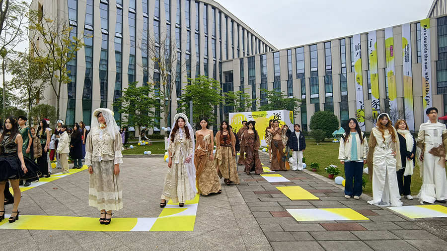 作为本年度美术学院专业考察课程教学成果展示活动之一,服装秀吸引了众多老师和同学驻足欣赏。初冬虽然寒意渐浓,但却未阻挡大家对服装艺术的衷心热爱。