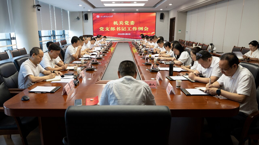 全面加强“政治型”机关建设,始终坚持把旗帜鲜明讲政治作为机关工作的生命线,制定《党支部书记工作例会制度》,定期召开支部书记工作例会,抓住“关键少数”,强化示范引领;严格执行“第一议题”制度,推动思想政治教育进支部、到党员、入头脑,切实把思想和行动统一到习近平总书记系列重要讲话精神上来;严格落实“三会一课”等党内政治生活制度,每年开展党组织书记抓基层党建工作述职,每月开展主题党日活动督查;坚定不移做好新时代意识形态工作,督促机关各部门做好阵地建设和管理;圆满完成机关第一选举单位推选学校第二届党代会代表工作。纵深推动“堡垒型”机关建设,制定《机关党支部标准化规范化建设量化考核评分表》,有力推动党支部标准化规范化建设;选树先进示范带动,纪检监察党支部和计划财务处党支部遴选成为校级样板党支部培育创建单位,档案馆党支部和后勤第一党支部获批成为机关党委样板支部培育创建单位;组织完成8个党总支的换届选举工作,实现党支部书记由部门负责人担任全覆盖,基层党组织力量得到全面加强。深入推进“学习型”机关建设,扎实开展党史学习教育、学习贯彻习近平新时代中国特色社会主义思想主题教育;构建“中心组领学、党支部跟学、机关党委督学、党员自学”联动学习机制;每月编制《机关党支部学习参考资料》《机关党委中心组学习参考资料》;坚持“走出去引进来”,邀请校内外专家开展讲座,组织沿着总书记足迹到眉山市三苏祠和永丰村,屏山县龙华镇开展学习,专题讲座被四川在线、川观新闻报道;组织机关全体科级干部集中学习党的二十届三中全会精神;每年表彰“学习强国”学习先进个人,营造“比学赶帮超”的良好学习氛围。