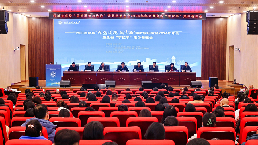 12月13日,四川省高校“思想道德与法治”课教学研究会2024年年会暨全省“手拉手”集体备课会在我校李白河校区举行。来自全省近80所高校的“思想道德与法治”课专家、学者近300人参会。四川省高校“思想道德与法治”课教学研究会会长李栓久,副会长肖兴政、吴满意、张小飞,研究会顾问景志明、阎钢,学校党委书记张力,党委常委、组织部部长、马克思主义学院院长王玉珏等出席。开幕式由研究会副会长林红主持。