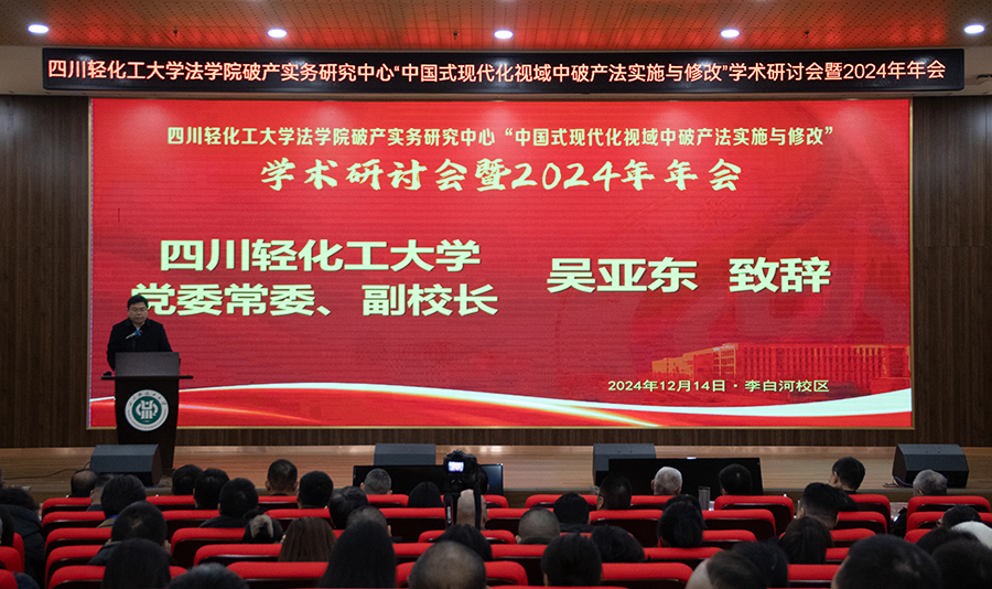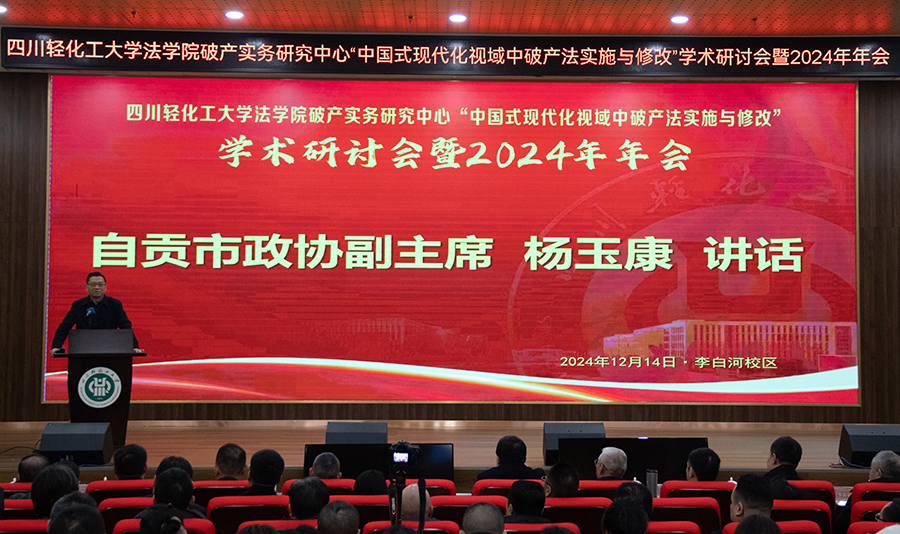 12月14日,我校法学院破产实务研究中心在李白河学术报告厅成功举办 2024 年年会暨学术研讨会,会议聚焦“中国式现代化视域中破产法实施与修改”主题,吸引了破产实务研究领域相关专家、学者及自贡市政协、人大、各级人民法院的特邀嘉宾100余人参会,共同探讨破产法相关热点问题与实务经验。