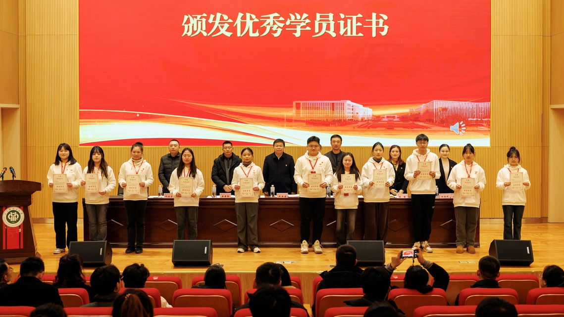参会领导为第三期“青马工程”学员代表颁发结业证书,并为优秀学员代表颁发了荣誉证书。吴亚东为第四期“青马工程”授班旗。