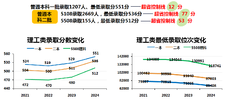 经过一系列创新举措的实施,学校吸引了更多优质生源,本科专业一志愿率超过80%,位次逐年提升,报到率保持在较高水平。