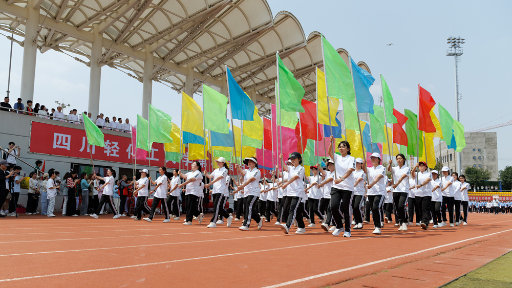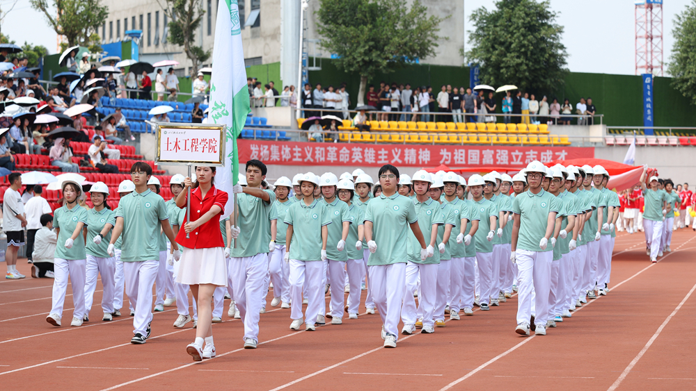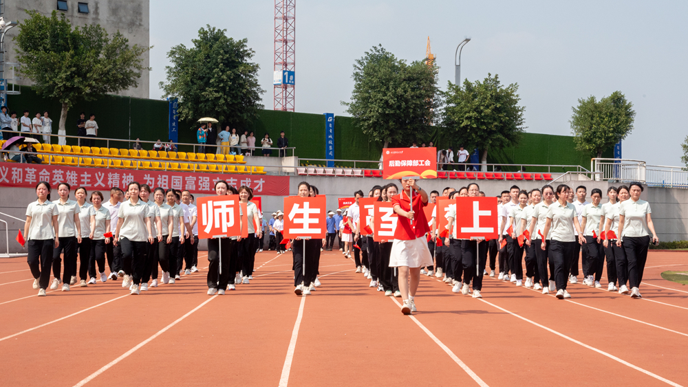 随后,教职工方队踏着《运动员进行曲》的铿锵节奏步入会场,看台上瞬间响起热烈的掌声。这群平日里在三尺讲台授业解惑的教育工作者,此刻换上运动装束,以别样姿态演绎体育精神。他们既展现出川轻化人昂扬向上的精神风貌,更昭示着体育强国建设正在校园沃土上生根发芽。