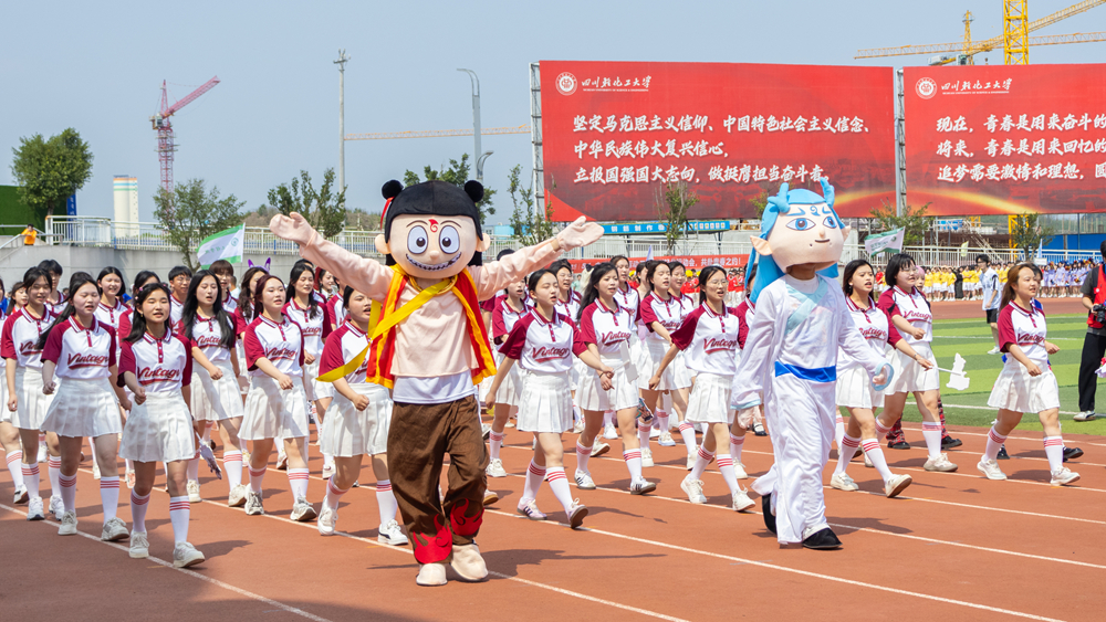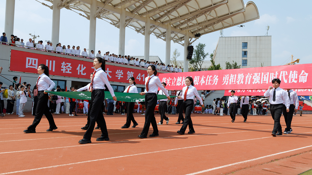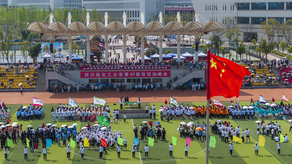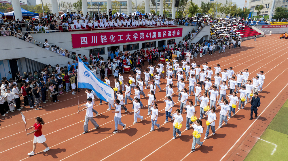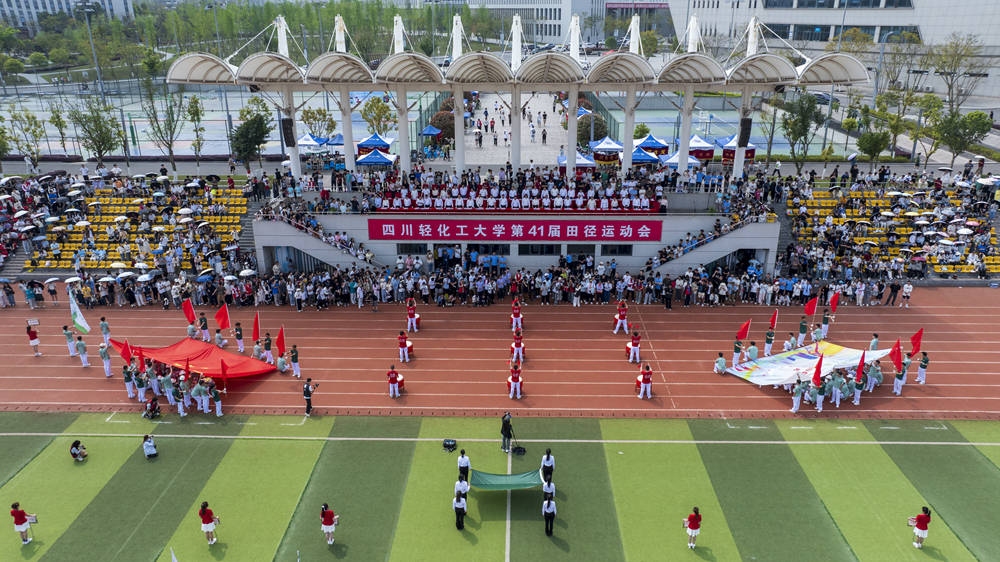 4月9日下午,春光灿烂,紫藤盛放,我校第41届田径运动会在李白河校区与宜宾校区同时开幕。校党委书记张力、校长庹先国分别在两个校区同时发出开幕指令,标志着这一体育盛事正式拉开帷幕。本届以阳光、健康、快乐为主题的运动盛会,将党的二十大报告中加快建设体育强国的战略部署转化为育人实践,在川轻化沃土上铺展开青春与热情交织的壮美画卷。