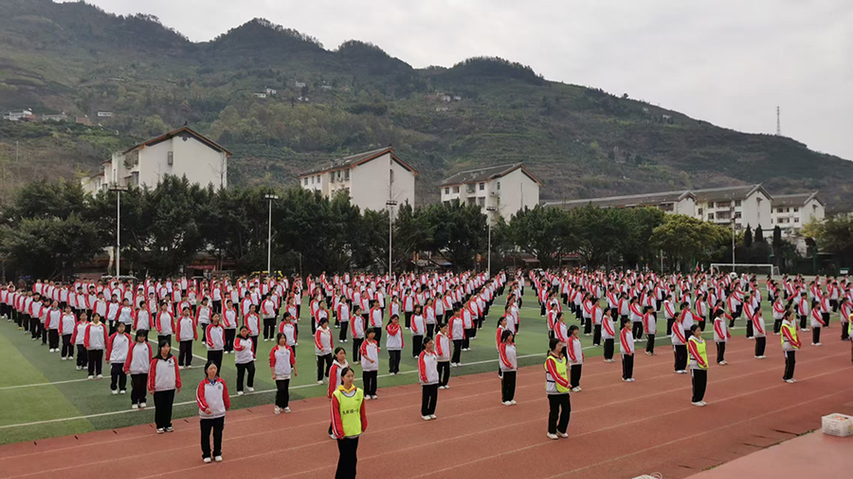 位于乌蒙山麓的书楼中学,虽被葱茏群山环抱,却因地理条件限制,体育教学设施相对简陋。课间操常年沿用单一广播体操,体育文化建设亟待提升。针对这一现状,体育学院团队深入调研,结合中学生身心特点及该校文化特色,精心编排了融合健身操、跳绳、体能训练和足球专项训练的复合型大课间课程。