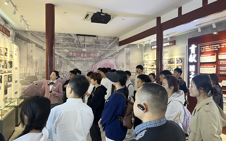 研学团队在工作人员引导下,首先走进“东锅跡忆园”三线建设主题展区。泛黄的老照片、珍贵的历史物件与沉浸式场景复原,生动展现了东方锅炉从三线建设时期的艰苦创业到如今高端装备制造领军企业的发展历程,让同学们深刻体会到“艰苦创业、勇攀高峰”的企业精神内涵。随后,团队参观了吴乾刚国家级无损检测技能大师工作室,观摩了智能化检测设备的操作流程,了解到无损检测技术在锅炉制造中的关键作用,直观感受“中国智造”的技术精度与创新活力。
