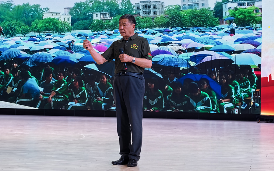 蔡朝东先生借助影像资料生动再现了老山战役的壮烈场景,并深情讲述了官兵们“以生命诠释信念”的英雄事迹。他运用“人生三喻”深刻阐释了生命的价值和奉献精神。即登山比标高、长河验流芳、天平量担当。在演讲中,蔡先生几度哽咽,深情追忆战友,向“老山精神”致敬,并强调新时代青年应将个人成长与国家命运紧密结合,做好应做的事情,承担应尽的义务,履行应担的使命。