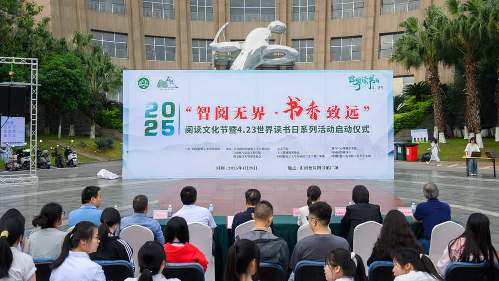4月28日上午,智阅无界•书香致远2025阅读文化节暨世界读书日系列活动启动仪式在汇南校区图书馆广场举行。本次活动由图书馆主办,校团委、人文学院、自动化与信息工程学院、教育与心理科学学院等单位协办。校党委常委、副校长胡光忠出席并致辞。