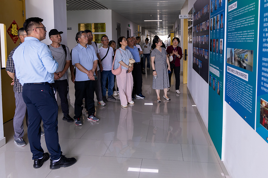 在学院党委书记张艳的陪同下,校友们参观了学院现代化的实验室,先进的设备和技术平台令他们赞叹不已,并对学院在教学科研方面取得的成就给予了高度评价。随后,他们一同驻足观看学院信息墙,回顾学院的发展历程。一张张珍贵的照片和一段段感人的故事,唤起了校友们在母校学习时的美好回忆,也让他们深切感受到母校与时代同行的坚实步伐。