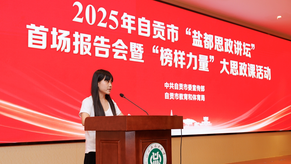 5月13日下午,由中共自贡市委宣传部、自贡市教育和体育局联合主办,我校承办的2025年自贡市“盐都思政讲坛”首场报告会暨“榜样力量”大思政课活动,在我校汇东校区学术报告厅举行。来自四川卫生康复职业学院、自贡职业技术学院、四川轻化工大学的毕业生及思政教师代表共240 余人聆听了这场充满力量与启迪的思政盛宴。