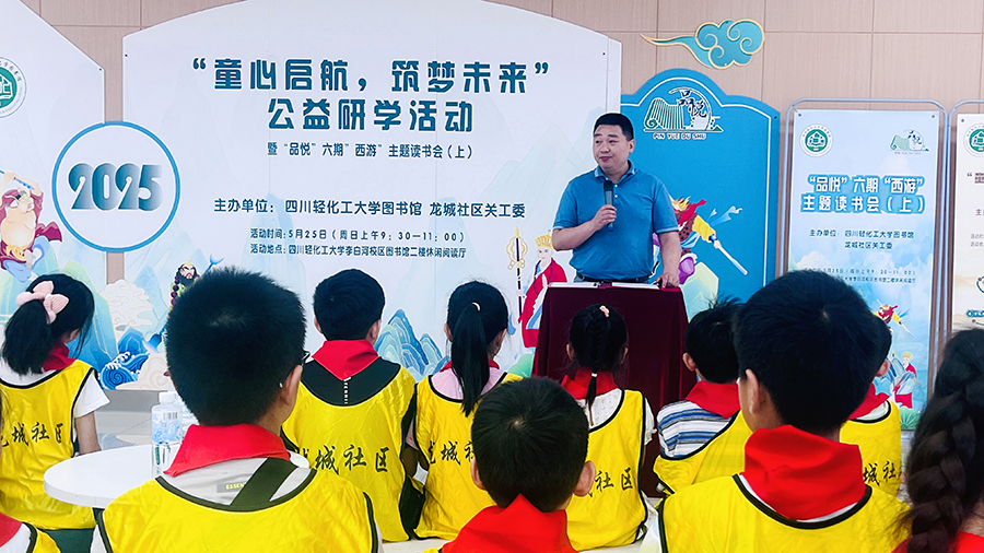 5月25日,图书馆与龙城社区关工委在李白河校区共同举办第六期品悦读书会暨公益研学活动,33名少年儿童化身取经少年,通过沉浸式名著研学和高校体验完成成长启蒙。