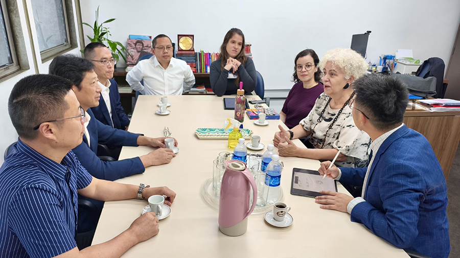 结识新朋友,不忘老朋友。巴西是我校在南美地区合作最为紧密的国家。此行我校继续深化与马托格罗索州合作关系。罗惠波一行在州国际事务办主任丽塔·希利托的陪同下,与州立大学校长维拉·马凯亚及全体校领导会面,并实地考察本部校区,双方就共建孔院、线上课程以及联合科研等再次交换意见、调整合作细节,还专门看望了我校在州立大学深造的毕业生。