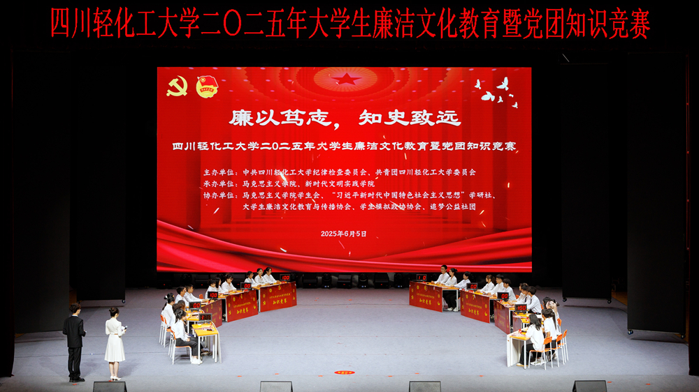 6月5日下午,我校在李白河校区盐都大剧院成功举办以“廉以笃志 知史致远”为主题的大学生廉洁文化教育暨党团知识竞赛。活动旨在全面贯彻落实党的二十大和二十届二中、三中全会精神,进一步深入贯彻中央八项规定精神学习教育,加强青年廉洁文化认知,厚植爱党爱国情怀。学校党委常委、副校长吴亚东,纪委副书记黄明,学生工作部部长邹国正及相关职能部门领导和各学院纪委书记、师生代表共同参加此活动。