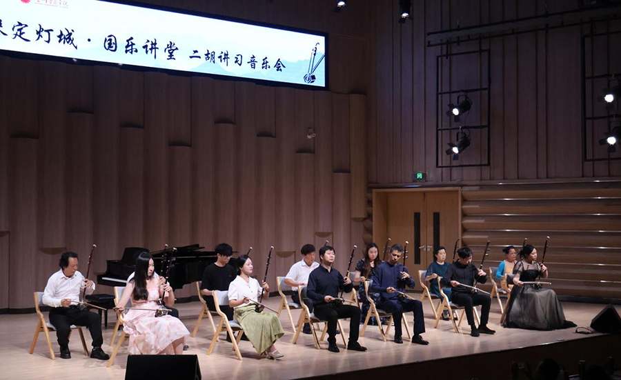在精彩的技法讲解后,两位演奏家及其学生带来了一场震撼人心的示范演奏音乐会。音乐会在三方联袂献演的经典曲目《光明行》中隆重开场,激昂奋进的旋律传递出对光明的向往;在气势磅礴的《战马奔腾》热烈激昂乐音中圆满结束,二胡特有的音色与演奏者们默契的配合,为此次国乐盛宴画上了圆满句号。
