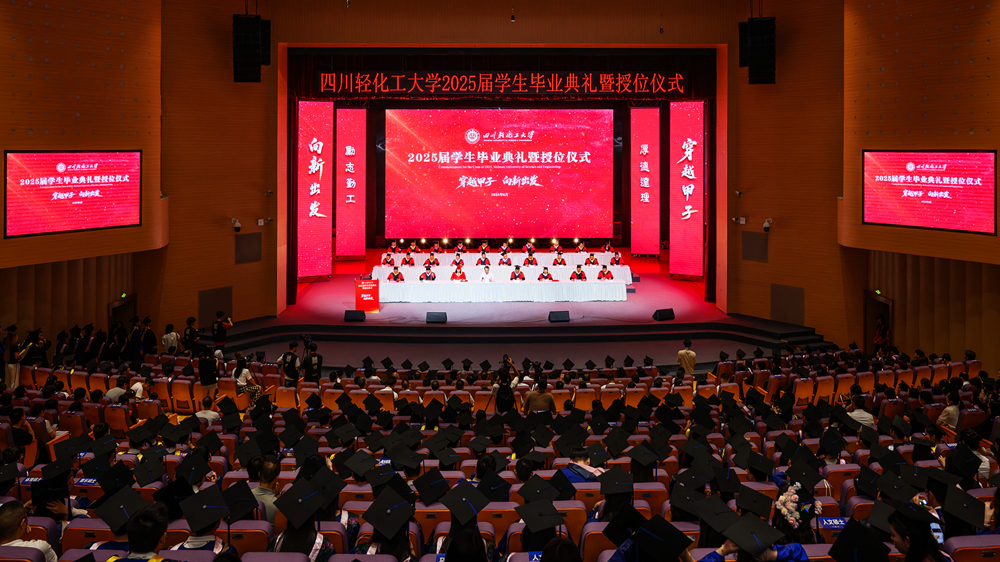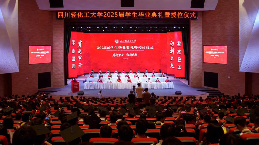 夏至骊歌起,扬帆启新程。6月20日,学校2025届学生毕业典礼暨授位仪式在自贡李白河校区和宜宾校区举行,校党委书记张力、校长曾英等校领导,自贡市委副书记、市长石钢,宜宾市委副书记、市长廖文彬,宜宾市副市长罗春涛,五粮液集团(股份)公司党委副书记肖浩等共聚一堂,共同见证和祝福满载学识与理想的川轻化学子,拨穗正冠,奔赴星辰大海,阔步锦绣未来。