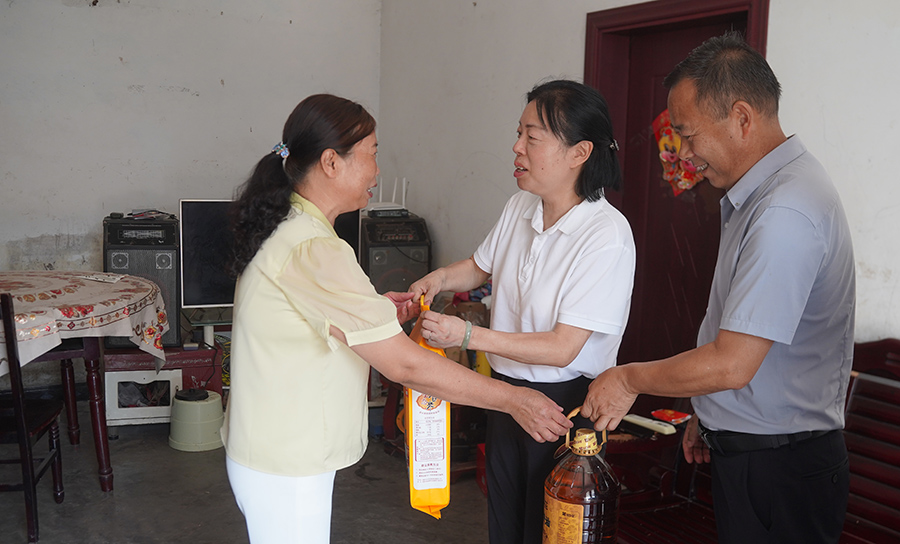 在农历村,陈范华听取了村党支部书记汪述槐及驻村第一书记晋良平的工作汇报。她指出,学校发展得益于地方的大力支持,应持续发挥人才培养、教育帮扶和产业支持的作用,助力农历村实现产业强、村民富、村庄美。她特别关心驻村干部高温下的工作安排,叮嘱做好防暑降温。