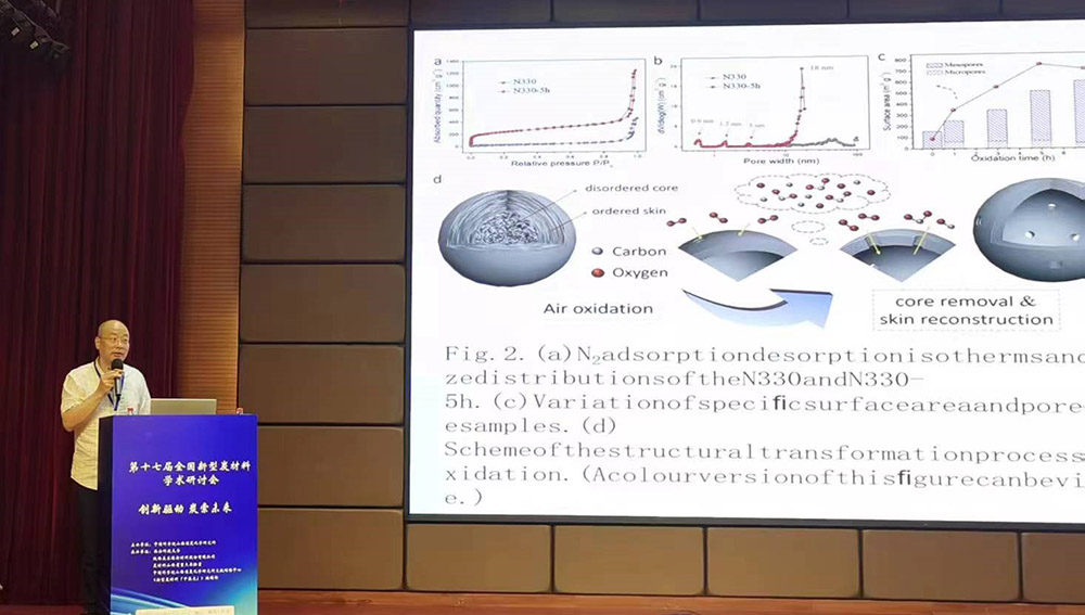 我校陈建教授在会上作题为“炭材料理论的新发现”的报告,引发广泛关注。他提出,应重新认识炭材料中的赝石墨结构,认为其具有独特的晶体排列和界面特性,不应仅被视为传统石墨的附属。借助高分辨表征与计算模拟等先进技术,陈建教授论证了该结构作为独立研究对象的重要性和潜力。