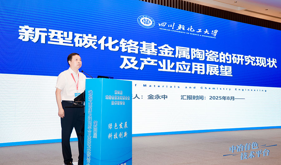 中国有色金属工业协会原会长康义、昆明理工大学副校长易建宏教授、硬质合金全国重点实验室主任王社权和我校金永中教授先后作大会主旨报告,以加强难熔金属及硬质合金领域技术交流,引导行业技术进步。金永中教授以《新型碳化铬基金属陶瓷的研究现状及产业化应用展望》为题,从硬质合金及金属陶瓷的研究背景、碳化铬基金属陶瓷的特性优势及技术瓶颈、技术研究进展、产业前景展望等方面系统阐述我校材料学院硬质材料团队近10年创新研究成果,引发与会者的广泛关注和热烈讨论。