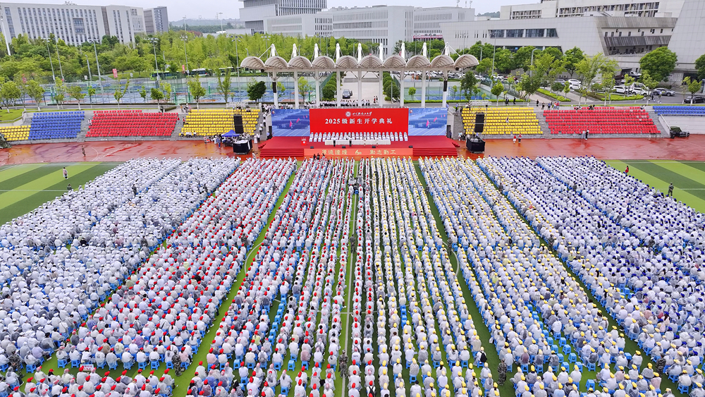9月8日上午8时30分,雨后初霁的四川轻化工大学李白河校区清新明朗,A区田径运动场上早已整齐排列着一个个色彩鲜明的方阵——新生们头戴蓝、黄、白、红四色帽子,犹如一幅斑斓青春的画卷,静待一场庄严仪式的开启。2025级新生开学典礼在此隆重举行。自贡市副市长陈张铭、校党委书记张力、校长曾英等校领导、各职能部门与学院负责人、教师代表及全体新生共同出席。典礼由学校党委常委、副校长吴亚东主持。