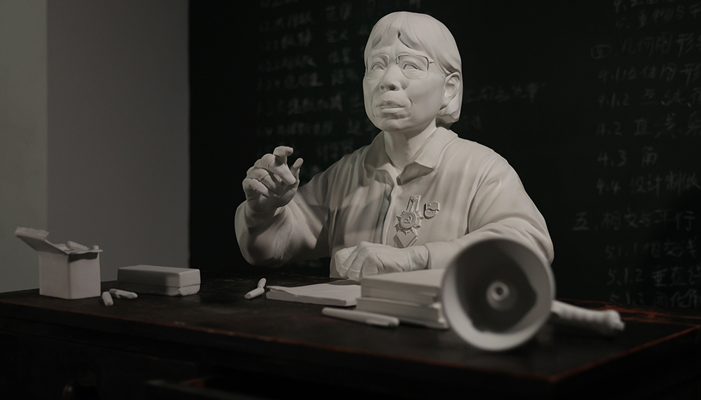 该作品以“七一勋章”获得者、“燃灯校长”张桂梅的讲课瞬间为素材,塑造了她扎根深山、坚守讲台,以教育照亮山区孩子未来的感人形象。马俊采用现代数字雕塑技术与实物相结合的方式,艺术再现山区教学现场,彰显了为时代楷模塑像、弘扬教育家精神的创作追求。
