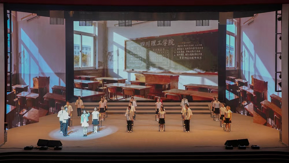 历史,是这场晚会最厚重的底色。校史馆中泛黄的照片,老教师口中沉淀的故事,校友心中珍藏的回忆都被一一唤醒,融入节目的血脉之中。从“三线建设”的铿锵脚步,到“四校融合”的宽广胸襟,再到从学院更名为大学的崭新篇章,每一个情节都是对岁月的凝视和回望,每一段表演都承载着轻化工人的集体记忆。从2024年盛夏启程,历经十五个月的精心雕琢,学校党委高位谋划,多部门协同联动,师生志愿者倾情投入,共同织就这场“有温度、有深度、有记忆”的文艺盛典。