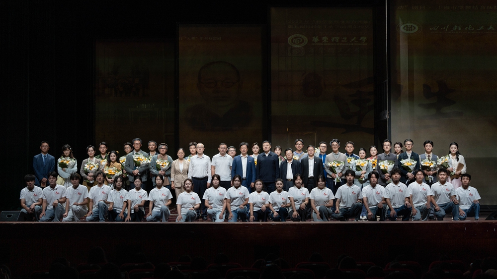 10月18日晚,四川轻化工大学汇东校区科学会堂内掌声雷动,情谊涌动。在喜迎建校60周年华诞之际,华东理工大学携原创大师剧《更生》远道而来,以一场跨越时空的艺术盛宴,为四川轻化工大学60周年校庆献上深情厚礼。华东理工大学党委常委、副校长赵黎明,我校党委副书记陈范华,党委常委、副校长高小林、罗惠波、胡光忠,共青团自贡市委书记杨荦,双方学校宣传部部长、校友代表、老同志代表、师生代表和自贡市相关单位代表等观演。