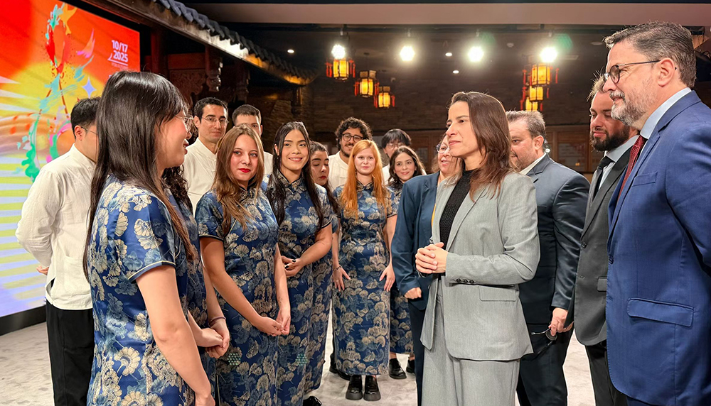 演出中,我校巴西籍留学生郭佳丽(Luisa)作为学生代表发言,分享了在校七个多月的求学经历。演出结束后,里拉州长专程与我校师生交流,并关切询问了中巴学生在彼此国家的学习生活体验。