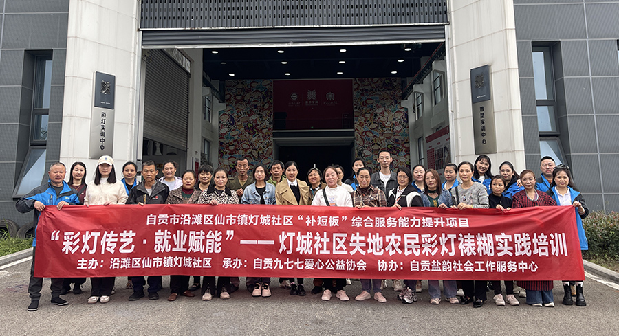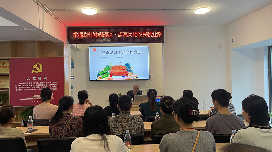 10月11日,美术学院彩灯艺术系教师李昊受邀参加沿滩区仙市镇“掌握彩灯裱糊理论·点亮失地农民就业路”专题培训,为灯城社区30余名失地农民进行授课。本次活动在省、市、区委社会工作部指导下,由灯城社区主办,自贡九七七爱心公益协会承办,自贡市盐韵社会工作服务中心协办,旨在培养一批技术熟练的彩灯裱糊工匠。