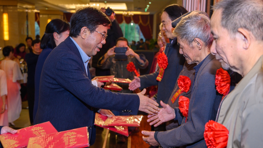 学校党委书记张力代表学校党委、行政,向全体离退休老同志致以节日的诚挚问候和崇高敬意。他指出,老同志们是学校事业发展的奠基者与见证人,学校将一如既往地关心关爱老同志,持续提升服务保障水平,让大家安享幸福安康的晚年。希望老同志们继续发挥自身优势,为学校“双一流”建设和高质量发展贡献智慧与力量。