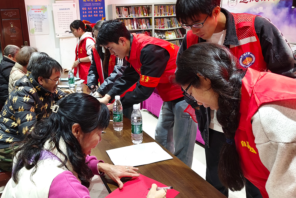 活动在社区图书阅览室举行。在“暖心陪伴”环节,党员志愿者们通过展示老照片、旧怀表等怀旧物件,与老人们温情对话,倾听他们的往昔故事。随后,全体人员共同高唱《我和我的祖国》,并动手制作祈福挂饰,老人们认真书写祝福,表达对美好生活的期盼。