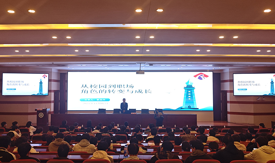 随后,面向近200名学生的专题报告会反响热烈。大邑瑞云水务工程发展部经理张宇以“拥抱变化,共筑未来”为题,解析了供水行业数字化趋势及岗位技术要求,为学生提供了实用的能力提升建议。四川瑞云水务客服调度员曹虎伟则分享“从校园到职场”的成长经验,从心态调整到简历撰写、面试技巧,提供了具体指导。