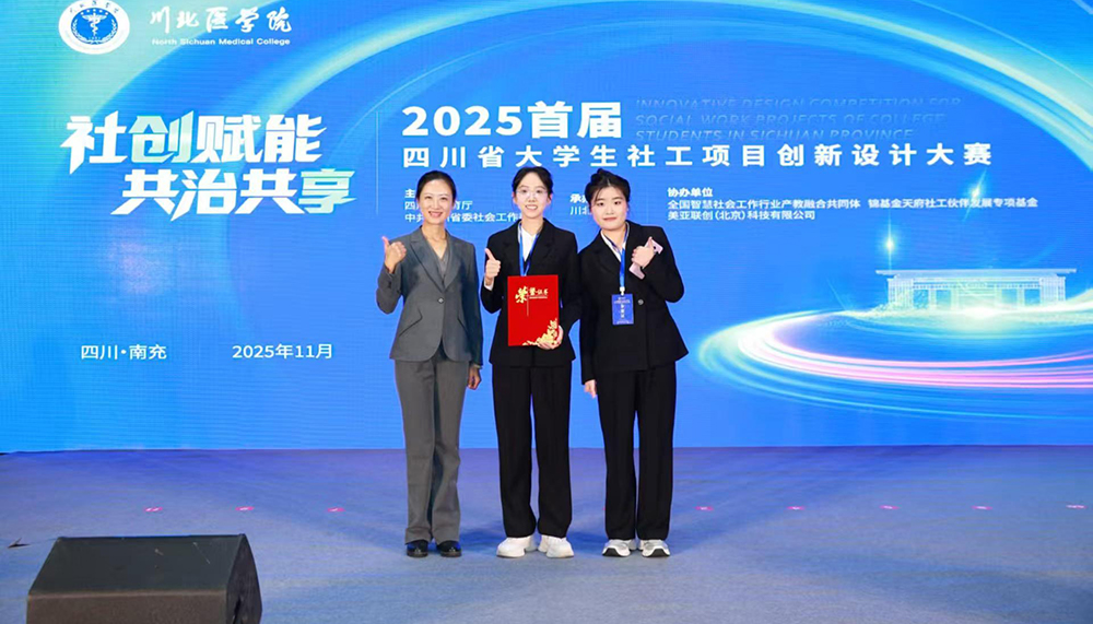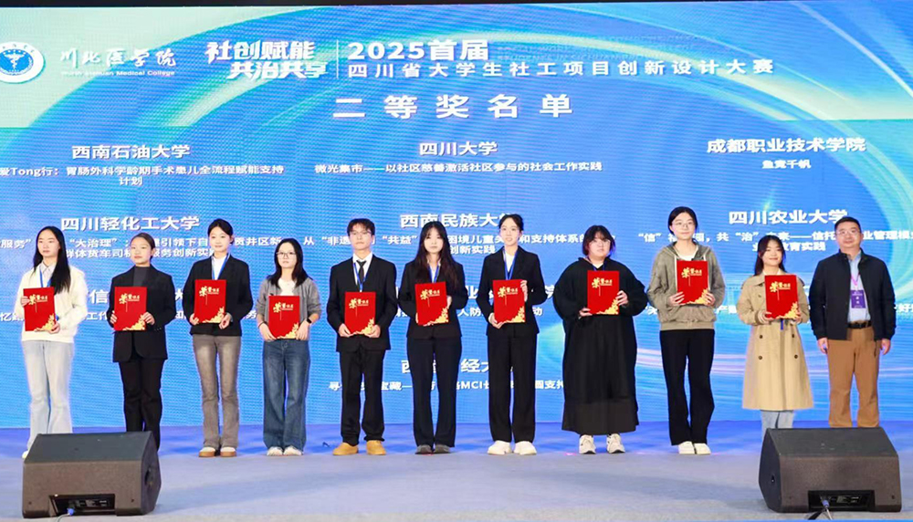 11月10日,首届四川省大学生社工项目创新设计大赛在南充市圆满落幕。本次大赛由四川省教育厅、中共四川省委社会工作部联合主办,川北医学院承办,吸引了全省106支队伍参与。经过初赛项目申报与复赛虚拟仿真情景实训的激烈角逐,最终64支队伍晋级决赛。