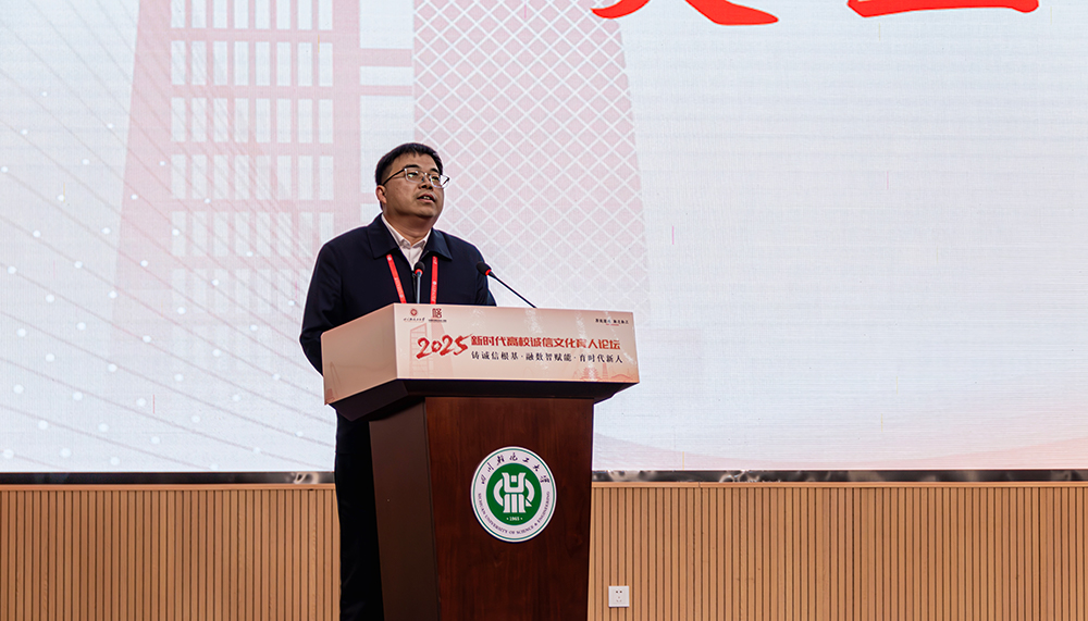 开幕式上,学校党委书记张力致辞。他深情回顾“652工程”的奋斗历程,通过“652”精神中忠诚担当与诚信品格的深刻内涵,强调诚信是育人工作的基石。结合宜宾市信用体系建设成果与李庄红色资源,提出高校应主动融入地方治理现代化进程,通过党建联建、项目共建实现诚信教育与区域发展的双向赋能。上海立信会计金融学院党委书记解超代表主办方致辞,他指出,论坛是落实立德树人、推进“大思政课”改革的重要实践,需以高站位推动诚信育人一体化布局并加速数智赋能,提升育人系统集成度与整体效能。