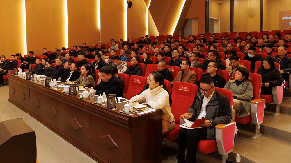 12月4日下午,学校党委理论学习中心组2025年第8次学习(扩大)会在李白河校区尚艺馆学术报告厅举行,专题学习党的二十届四中全会精神,全校中层干部参加。会议由学校党委书记张力主持。