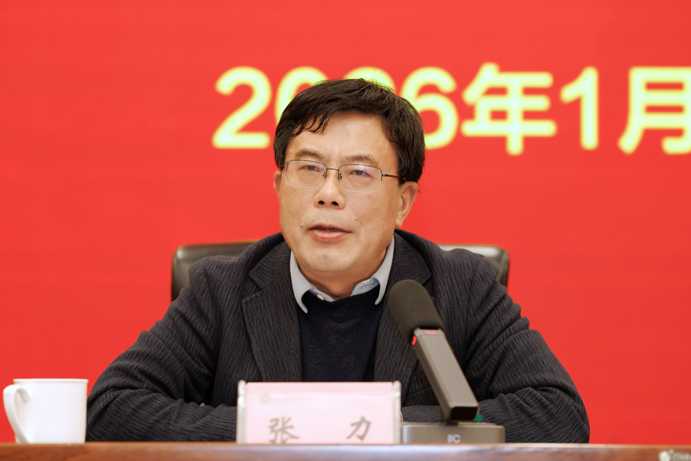 张力向全校师生员工一年来的辛勤付出表示感谢。他强调,学校当前正处于重要发展节点,全校师生员工要统一思想、团结一心、真抓实干、攻坚克难,狠抓各项重点工作落实落地,凝聚合力推动学校内涵式高质量发展。寒假期间要坚决筑牢校园安全防线,着重谋划新学期工作,做到“放假不放松”,有序推动各项重点工作,为2026年学校“十五五”规划高质量开局奠定坚实基础。