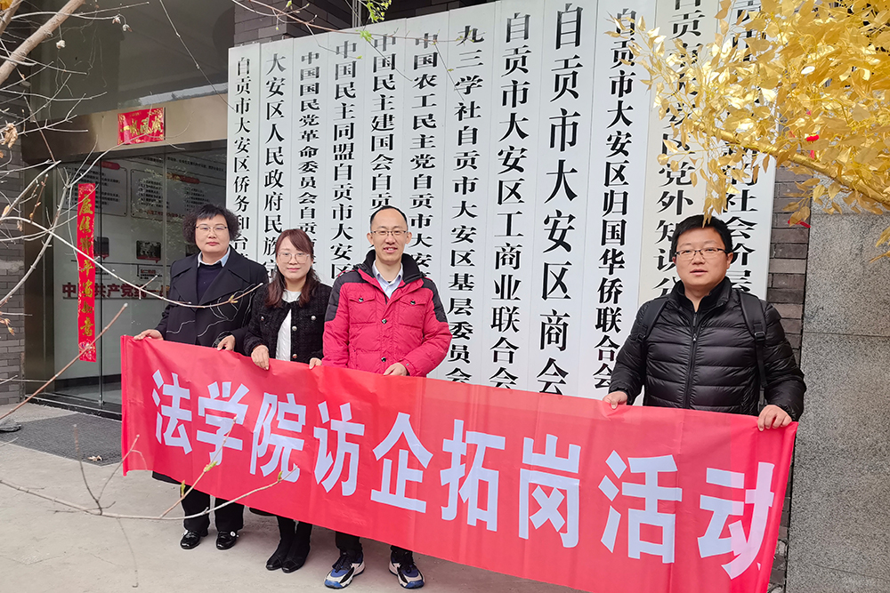 为落实访企拓岗促就业要求,深化产教融合,3月14日下午,我校法学院法学系主任曾凡珂、行政管理系主任杨钊、劳动与社会保障系主任李鹏飞一行赴自贡市大安区总商会开展调研。大安区总商会秘书长李明祥热情接待,双方围绕毕业生就业合作、人才培养方案修订等议题深入交流。
